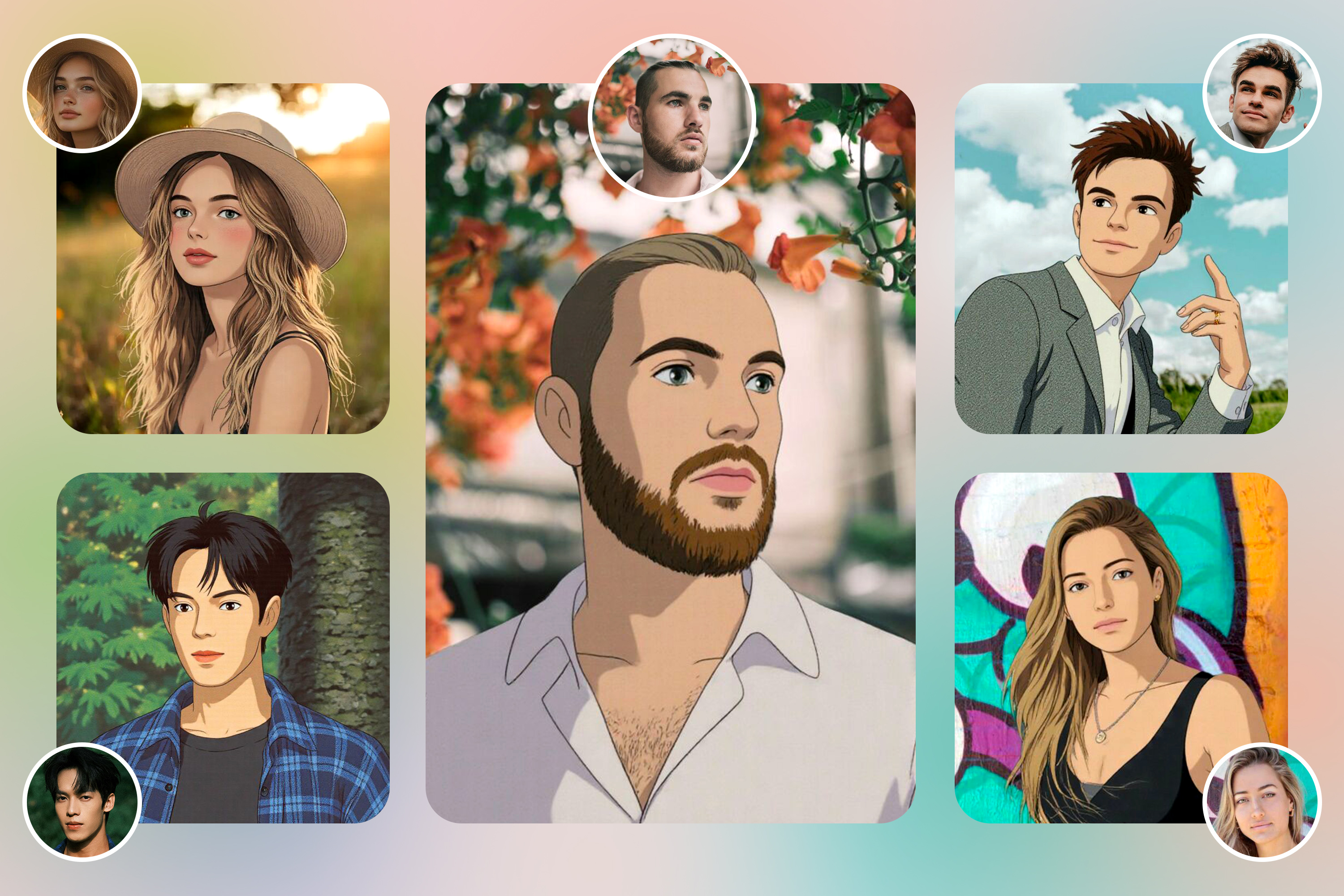 Ghibli-inspired softness and classic anime clarity. Dreamy enough to look kawaii, real enough to keep facial features recognizable.